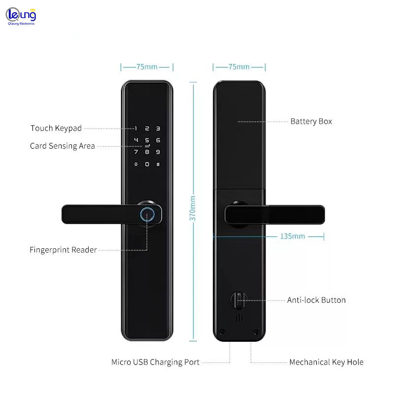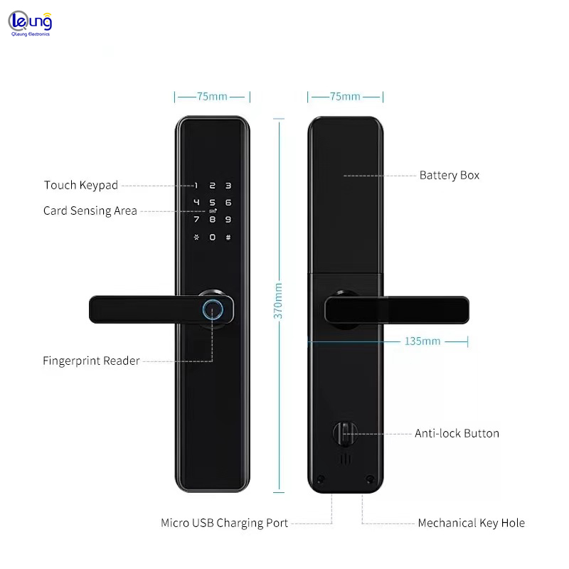 | Métodos de desbloqueo | Aplicación Tuya WiFi / Aplicación TTlock, Contraseña, Huella dactilar, Tarjeta, Llave, Puerto USB |